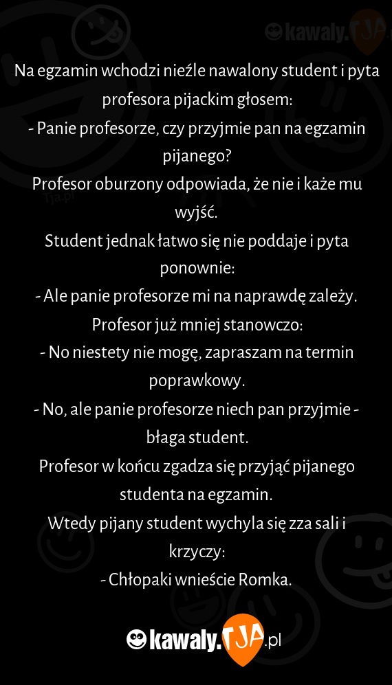- Panie profesorze, czy przyjmie pan na egzamin pijanego?