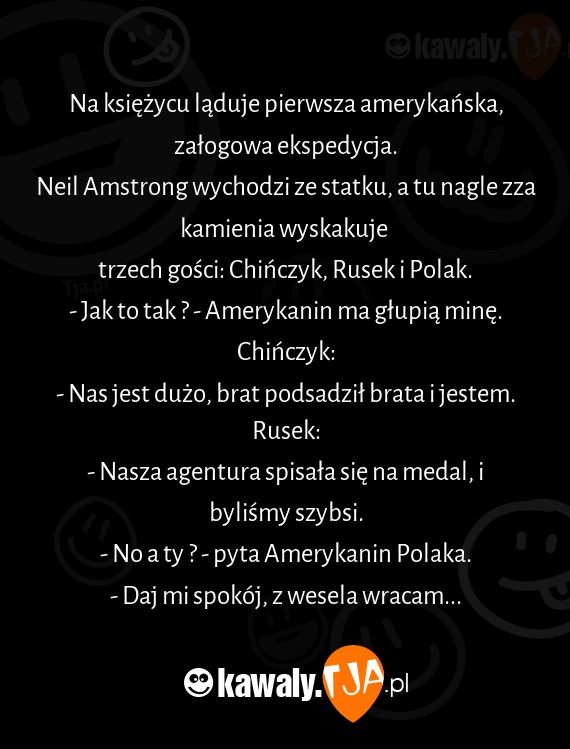 Neil Amstrong wychodzi ze statku, a tu nagle zza kamienia wyskakuje