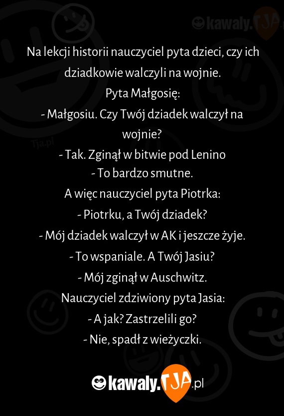 Na lekcji historii nauczyciel pyta dzieci, czy ich dziadkowie walczyli na wojnie.