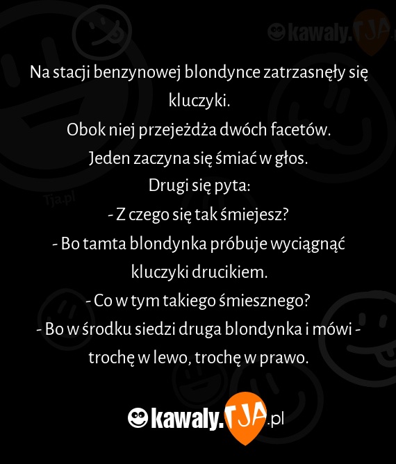 - Bo w środku siedzi druga blondynka i mówi - trochę w lewo, trochę w prawo.