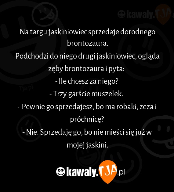 Na targu jaskiniowiec sprzedaje dorodnego brontozaura.