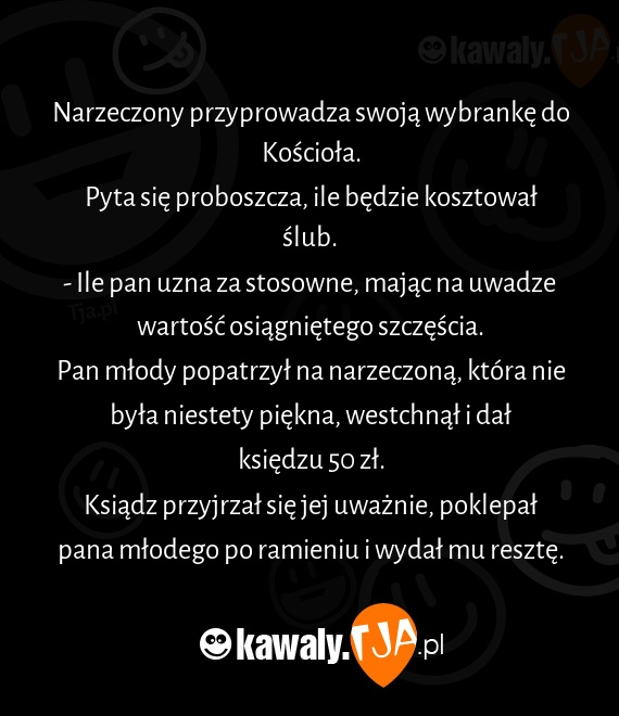 Ksiądz przyjrzał się jej uważnie, poklepał pana młodego po ramieniu i wydał mu resztę.