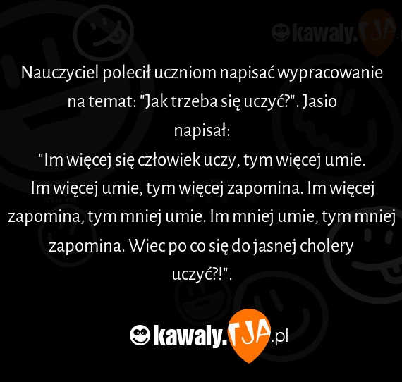 Nauczyciel polecił uczniom napisać wypracowanie na temat: "Jak trzeba się uczyć?". Jasio napisał: