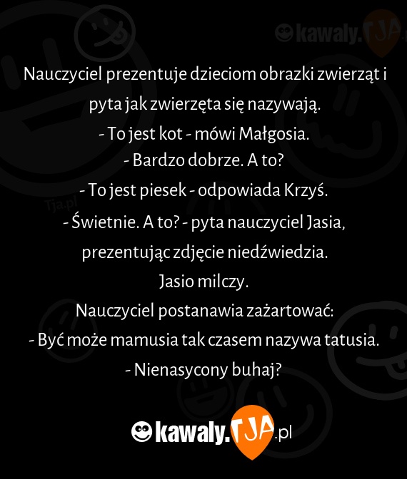 - Świetnie. A to? - pyta nauczyciel Jasia, prezentując zdjęcie niedźwiedzia.