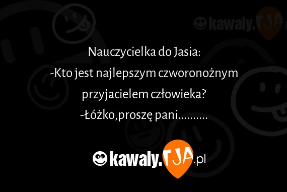 Nauczycielka do Jasia: -Kto jest najlepszym czworonoznym przyjacielem czlowieka? -Lozko,prosze pani..........
