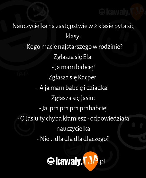 Nauczycielka na zastępstwie w 2 klasie pyta się klasy: