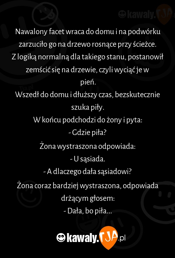 Wszedł do domu i dłuższy czas, bezskutecznie szuka piły.