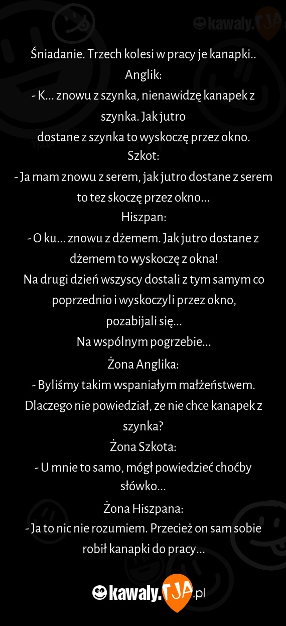 Na drugi dzień wszyscy dostali z tym samym co poprzednio i wyskoczyli przez okno,