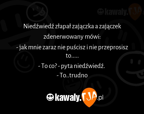 Niedxwiedx zlapal zajaczka a zajaczek zdenerwowany mowi: - jak mnie zaraz nie puscisz i nie przeprosisz to..... - To co? - pyta niedxwiedx. - To..trudno