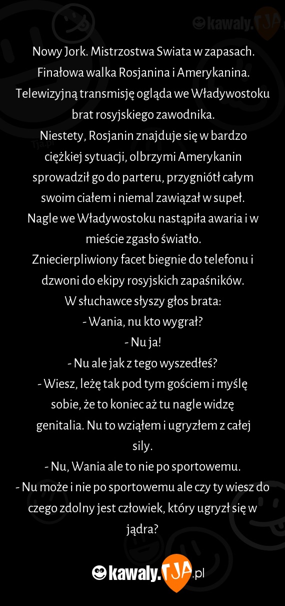 - Nu może i nie po sportowemu ale czy ty wiesz do czego zdolny jest człowiek, który ugryzł się w jądra?