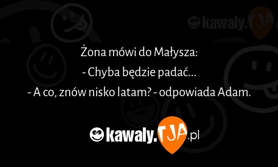 Żona mówi do Małysza: - Chyba będzie padać... - A co, znów nisko latam? - odpowiada Adam.