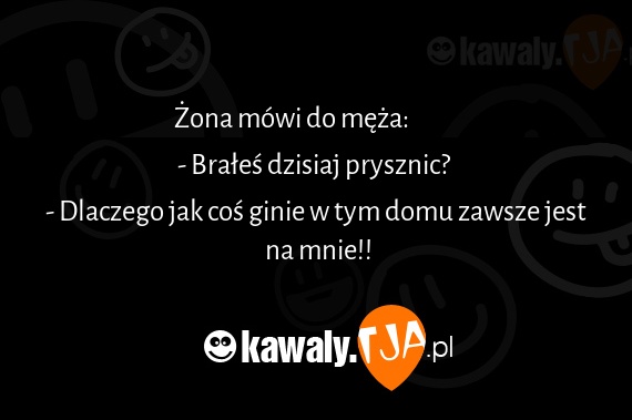 Żona mówi do męża: - Brałeś dzisiaj prysznic? - Dlaczego jak coś ginie w tym domu zawsze jest na mnie!!
