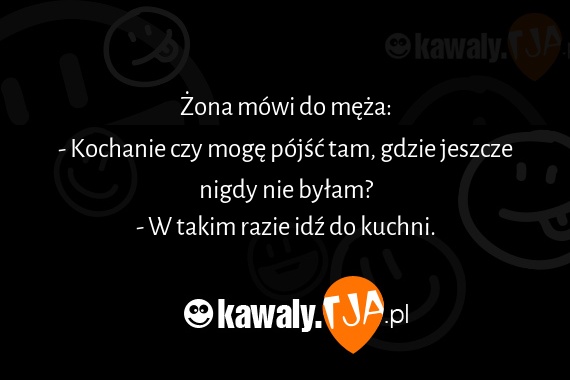 Żona mówi do męża: - Kochanie czy mogę pójść tam, gdzie jeszcze nigdy nie byłam? - W takim razie idź do kuchni.