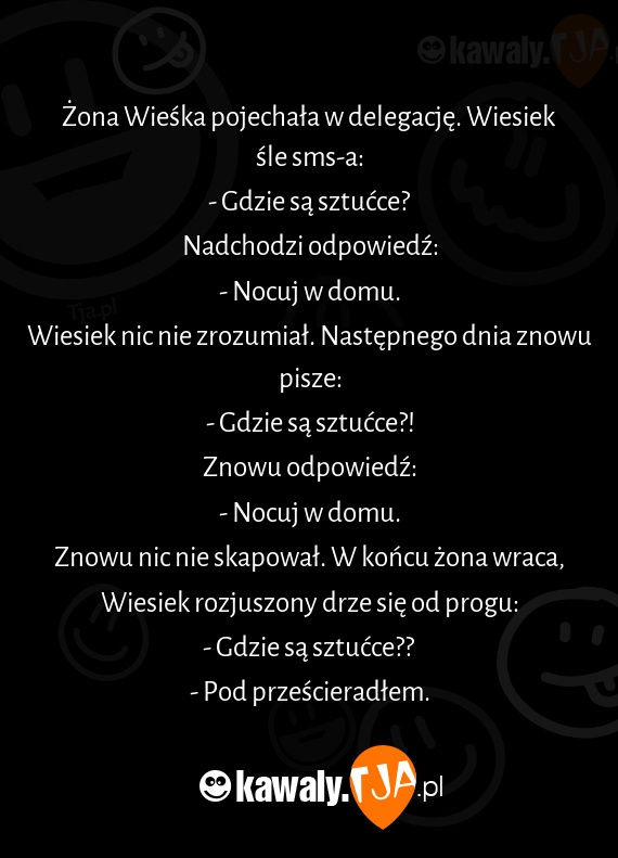 Żona Wieśka pojechała w delegację. Wiesiek śle sms-a: