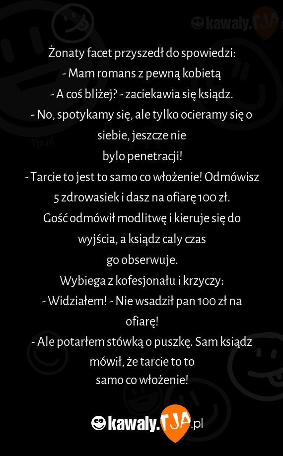 - Tarcie to jest to samo co włożenie! Odmówisz 5 zdrowasiek i dasz na ofiarę 100 zł.