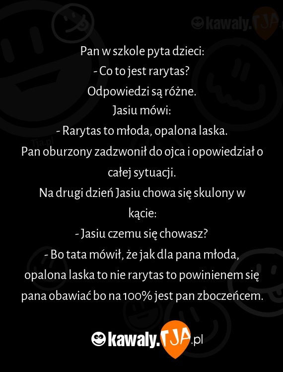- Bo tata mówił, że jak dla pana młoda, opalona laska to nie rarytas to powinienem się pana obawiać bo na 100% jest pan zboczeńcem.