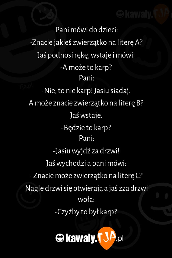 Nagle drzwi się otwierają a jaś zza drzwi woła: