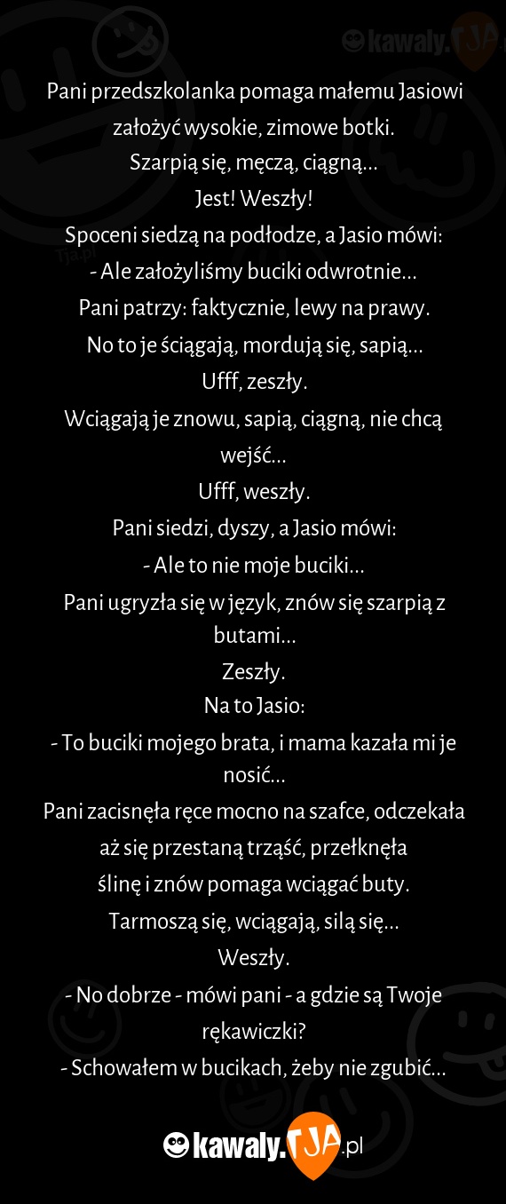 - No dobrze - mówi pani - a gdzie są Twoje rękawiczki?