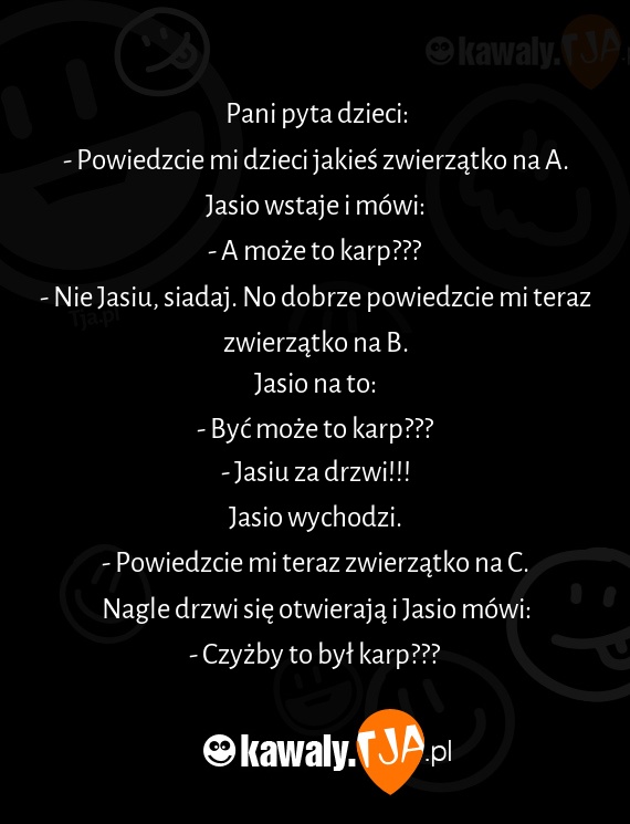- Nie Jasiu, siadaj. No dobrze powiedzcie mi teraz zwierzątko na B.