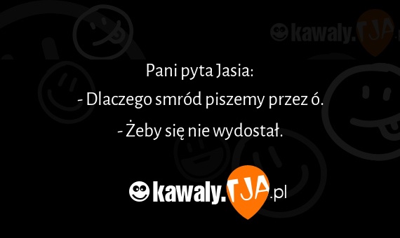 Pani pyta Jasia: - Dlaczego smród piszemy przez ó. - Żeby się nie wydostał.