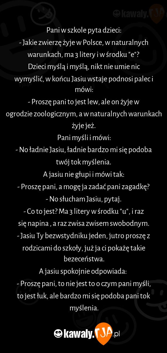 - Proszę pani, a mogę ja zadać pani zagadkę?