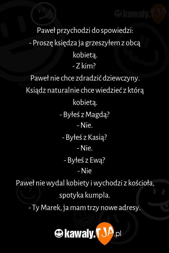 Ksiądz naturalnie chce wiedzieć z którą kobietą.