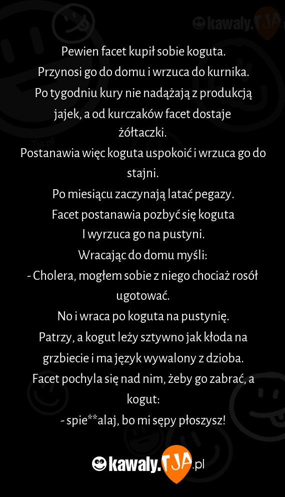 Postanawia więc koguta uspokoić i wrzuca go do stajni.