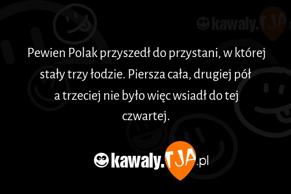 Pewien Polak przyszedł do przystani, w której stały trzy łodzie. Piersza cała, drugiej pół a trzeciej nie było więc wsiadł do tej czwartej.