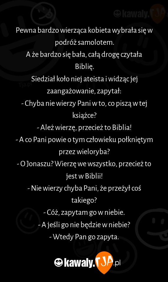 - O Jonaszu? Wierzę we wszystko, przecież to jest w Biblii!