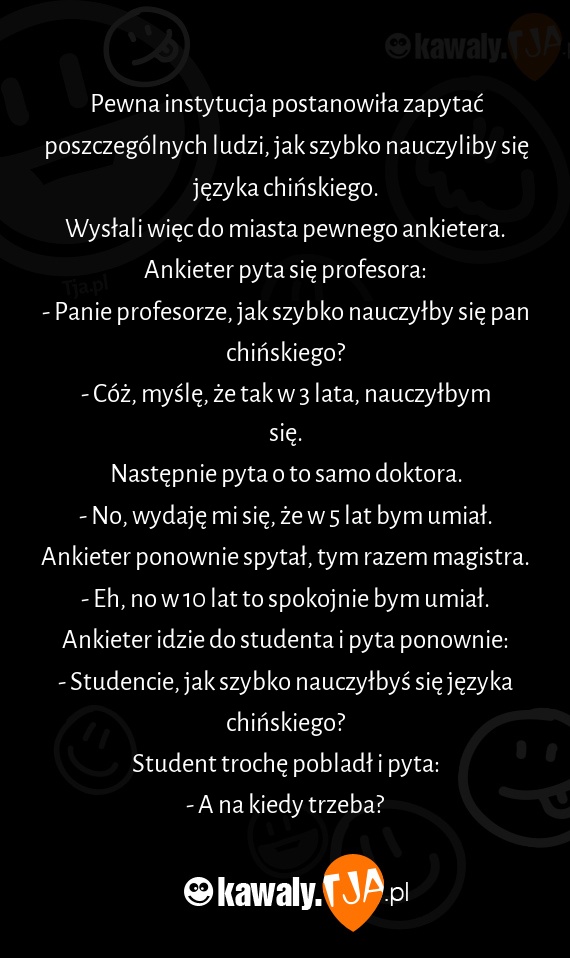- Panie profesorze, jak szybko nauczyłby się pan chińskiego?