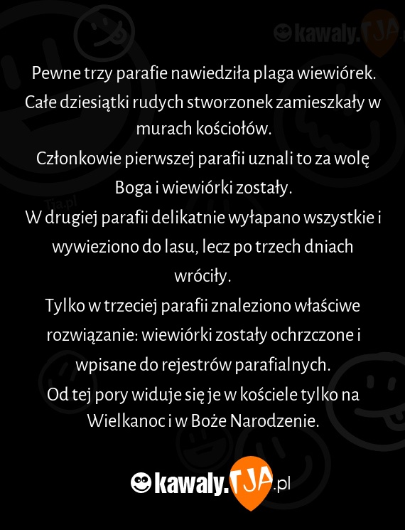 Tylko w trzeciej parafii znaleziono właściwe rozwiązanie: wiewiórki zostały ochrzczone i wpisane do rejestrów parafialnych.
