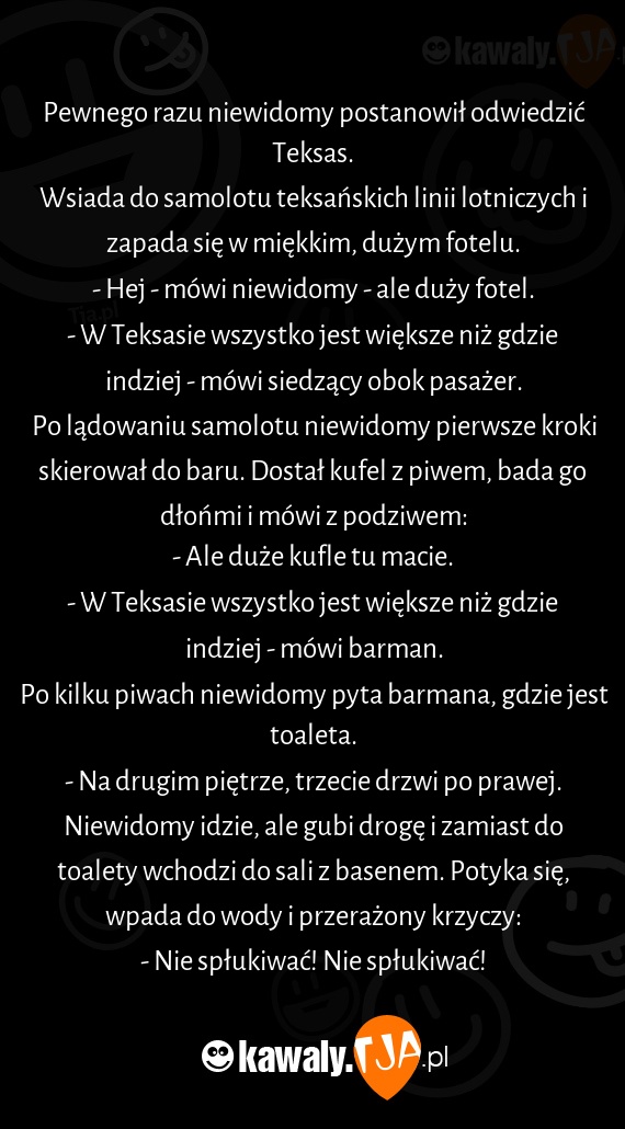 <br>- W Teksasie wszystko jest większe niż gdzie indziej - mówi siedzący obok pasażer.
