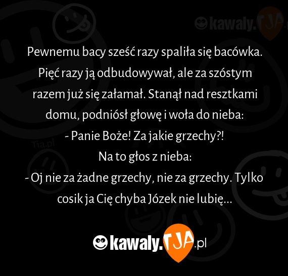 Pięć razy ją odbudowywał, ale za szóstym razem już się załamał. Stanął nad resztkami domu, podniósł głowę i woła do nieba: