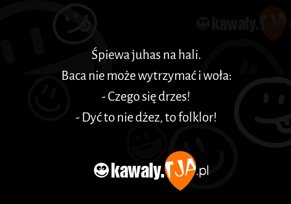 Śpiewa juhas na hali. Baca nie może wytrzymać i woła: - Czego się drzes! - Dyć to nie dżez, to folklor!