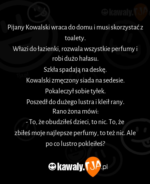 Pijany Kowalski wraca do domu i musi skorzystać z toalety.