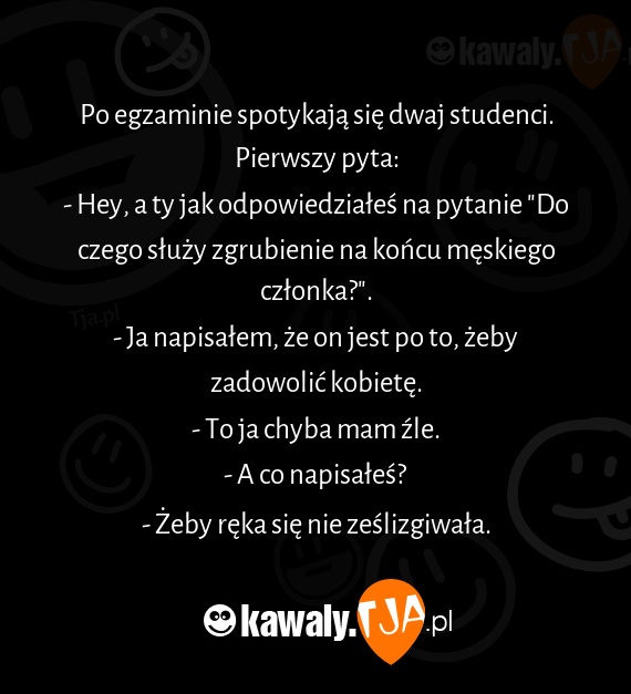 - Hey, a ty jak odpowiedziałeś na pytanie "Do czego służy zgrubienie na końcu męskiego członka?".