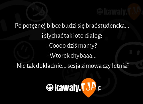 Po poteznej bibce budzi sie brac studencka... i slychac taki oto dialog: - Coooo dzis mamy? - Wtorek chybaaa... - Nie tak dokladnie... sesja zimowa czy letnia?