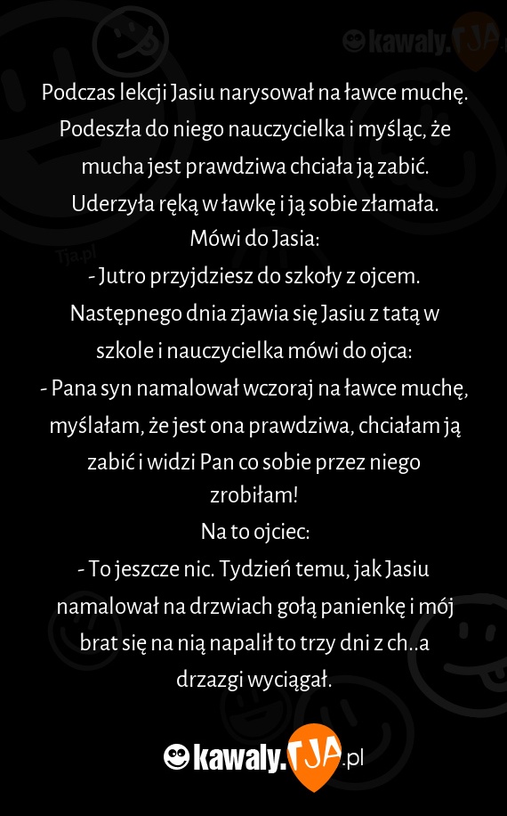 Następnego dnia zjawia się Jasiu z tatą w szkole i nauczycielka mówi do ojca:
