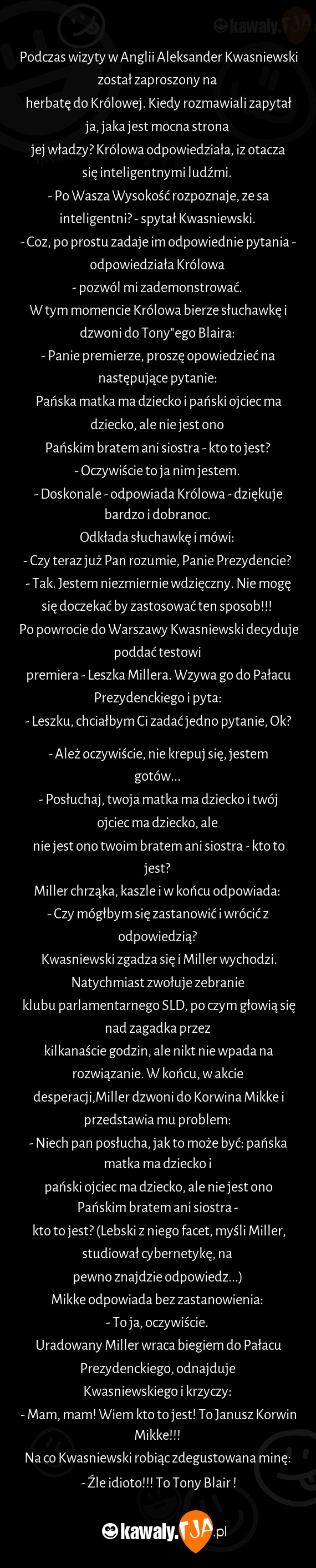 - Po Wasza Wysokość rozpoznaje, ze sa inteligentni? - spytał Kwasniewski.