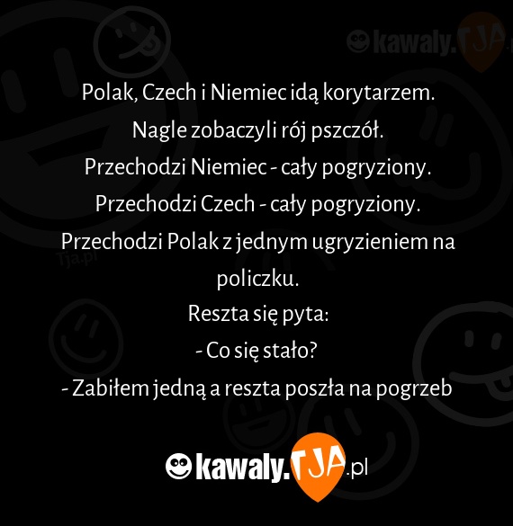 Przechodzi Polak z jednym ugryzieniem na policzku.