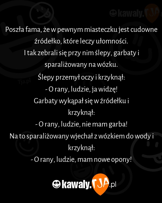 Poszła fama, że w pewnym miasteczku jest cudowne źródełko, które leczy ułomności.
