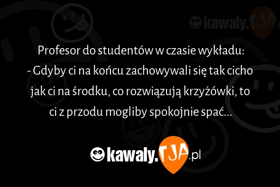 Profesor do studentów w czasie wykładu: - Gdyby ci na końcu zachowywali się tak cicho jak ci na środku, co rozwiązują krzyżówki, to ci z przodu mogliby spokojnie spać...