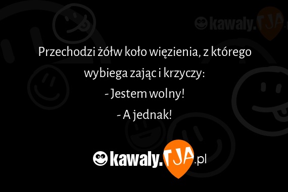 Przechodzi żółw koło więzienia, z którego wybiega zając i krzyczy: - Jestem wolny! - A jednak!