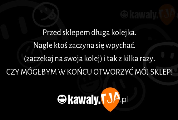 Przed sklepem dluga kolejka. Nagle ktos zaczyna sie wpychac. (zaczekaj na swoja kolej) i tak z kilka razy. CZY MOGLBYM W KONCU OTWORZYC MOJ SKLEP!