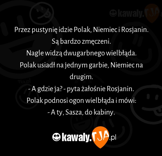 Polak usiadł na jednym garbie, Niemiec na drugim.