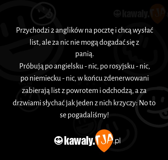 Przychodzi 2 anglików na pocztę i chcą wysłać list, ale za nic nie mogą dogadać się z panią.