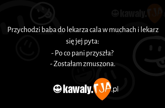 Przychodzi baba do lekarza cala w muchach i lekarz sie jej pyta: - Po co pani przyszla? - Zostalam zmuszona.