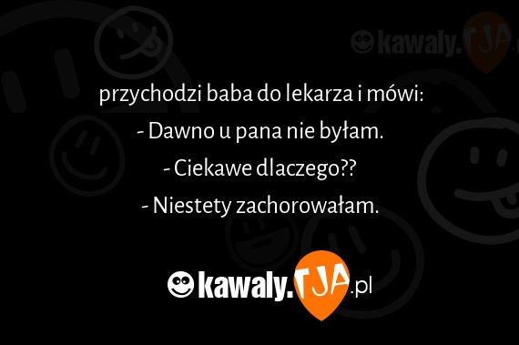 przychodzi baba do lekarza i mowi: - Dawno u pana nie bylam. - Ciekawe dlaczego?? - Niestety zachorowalam.