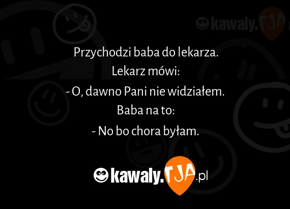Przychodzi baba do lekarza. Lekarz mówi: - O, dawno Pani nie widziałem. Baba na to: - No bo chora byłam.