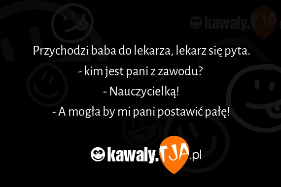 Przychodzi baba do lekarza, lekarz sie pyta. - kim jest pani z zawodu? - Nauczycielka! - A mogla by mi pani postawic pale!